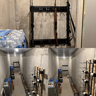 Shooting Range 64 feet Total Length. The backstop is 5 Layers of sand and gravel conveyor belt material. The ventilation fan is a 3×3 whole-house fan. Access door to fan room.