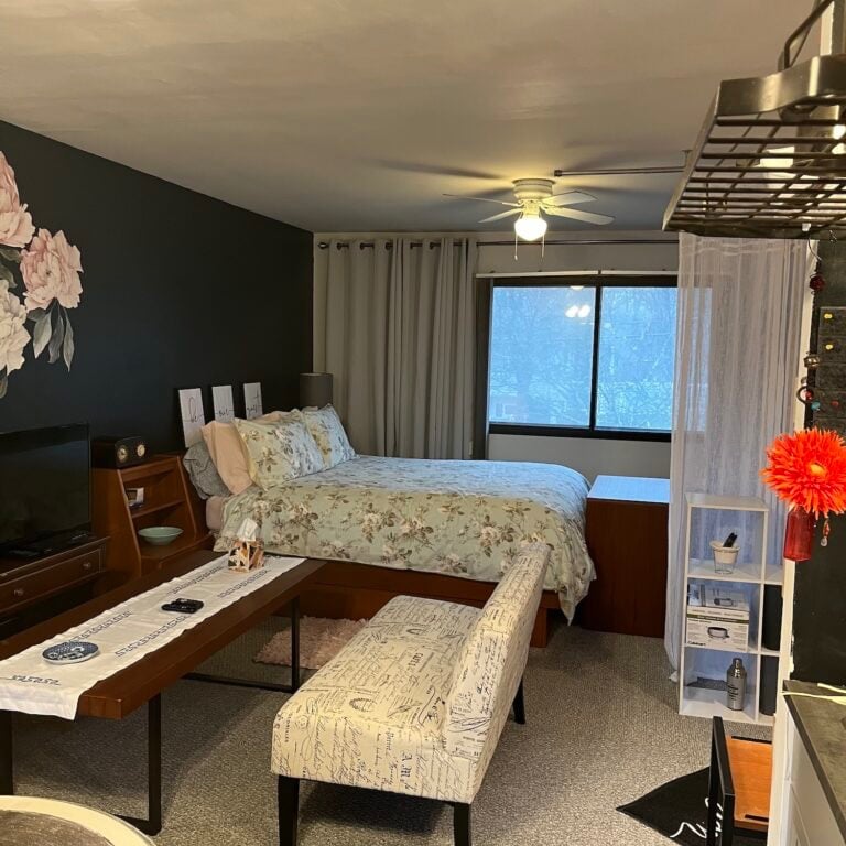Welcome to your intimate haven, where the line between comfort and functionality seamlessly blurs. This cozy studio bedroom, complete with a charming kitchenette, is designed to offer you a retreat that combines the warmth of a bedroom with the convenience of a well-equipped kitchen.